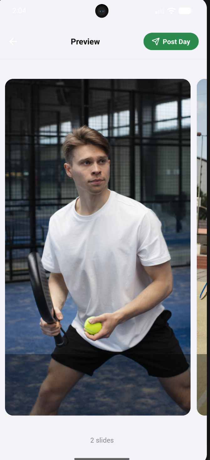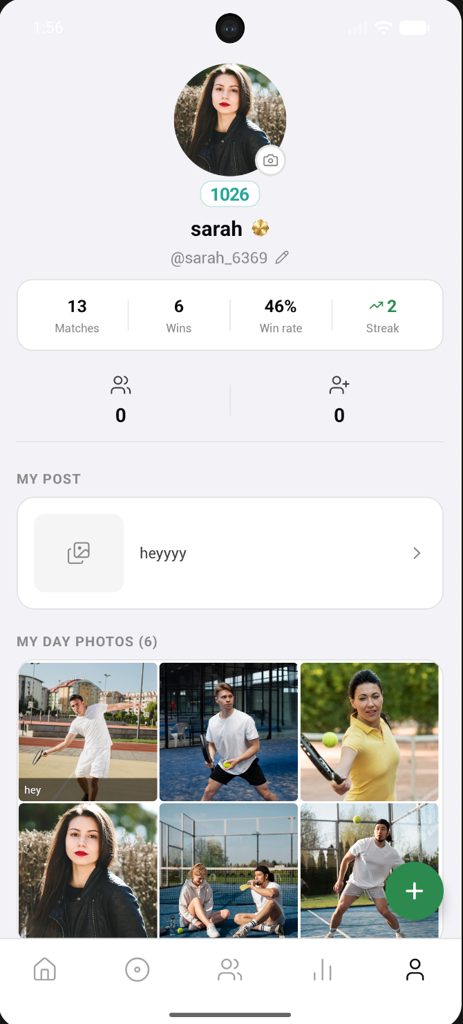 Share 24-hour story-style photos from your matches. Add captions, view friends' photos in a full-screen cinematic viewer, and relive the day.